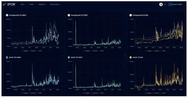DeFi 的 TVL 达到了 750 亿美元,与 2022 年 11 月 11 日的历史最高水平 1750 亿美元相比,仍有 270% 的差距。然而,在 DeFi 领域,借贷利率正在全面上升。Ipor 的指数显示,借款的年化利率可高达 10%。
