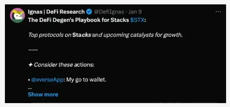 Stack 的 STX 在一周内上涨了 75%,因为团队正在为 Nakamoto 升级做准备。这将把区块时间从无法使用的 10 分钟缩短到 5 秒。这是一个重大的升级,使 Stacks 终于变得好玩起来。我预计在 Stacks 生态系统中会有更多的 dApp 和空投。