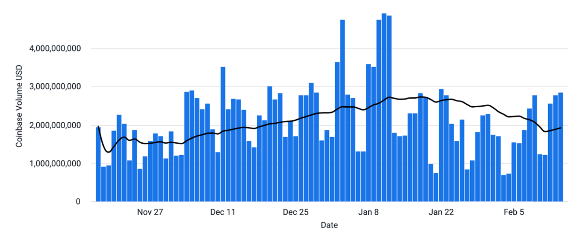 Coinbase平台交易量(美元)