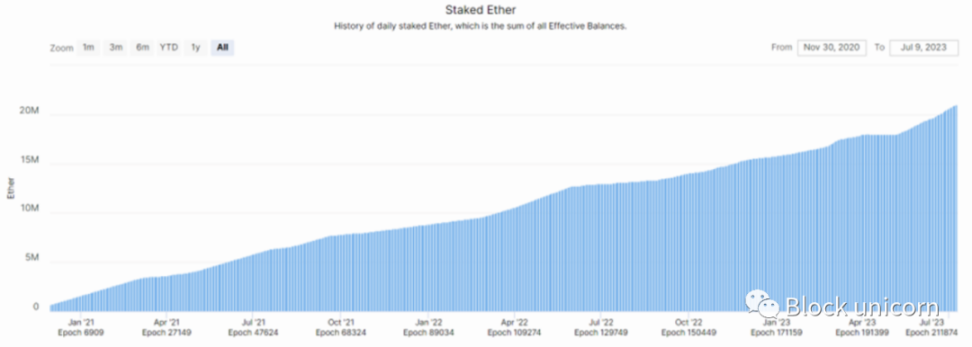当你把这个放在上下文中,它更加令人印象深刻:现在,大约有 1000 万 ETH 存入流动性质押协议。这个数字自 2022 年初以来已经增长了 5 倍以上!