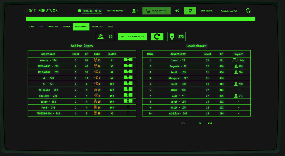 (Source: Fred在Loot Survivor上的游戏截图和表现排名)