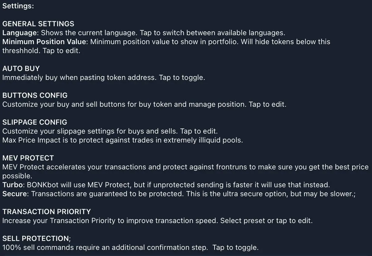 @bonkbot_io是主要的免费狙击机器人,可以在几秒钟内购买代币。它直接与区块链配合使用,加快了购买速度。