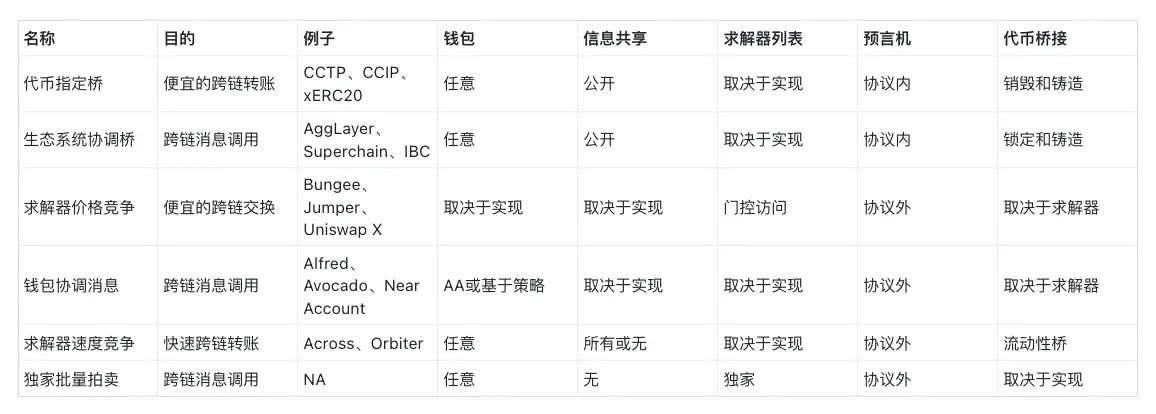 跨链价值转移将通过代币授权的桥接来实现低费用,通过求解器速度或价格竞赛来实现快速执行。而信息传输则会通过与生态系统匹配的消息桥接进行路由,旨在最大限度地降低用户成本,并通过钱包控制的平台来最大化速度。最终,这六种不同的设计方案将形成一个集群,因为它们分别满足不同的需求,并利用在权衡矩阵不同区域中的效率。