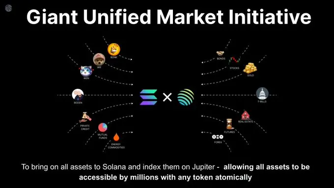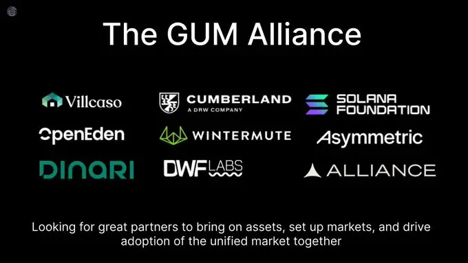 比如以 MEME 游乐园起家的 Jupiter, 开始搞大一统市场,联合多家项目与机构成立 GUM 联盟,无论是 MEMECOIN、RWA、股票还是外汇,通通荤素不忌,主打一个杂食。
