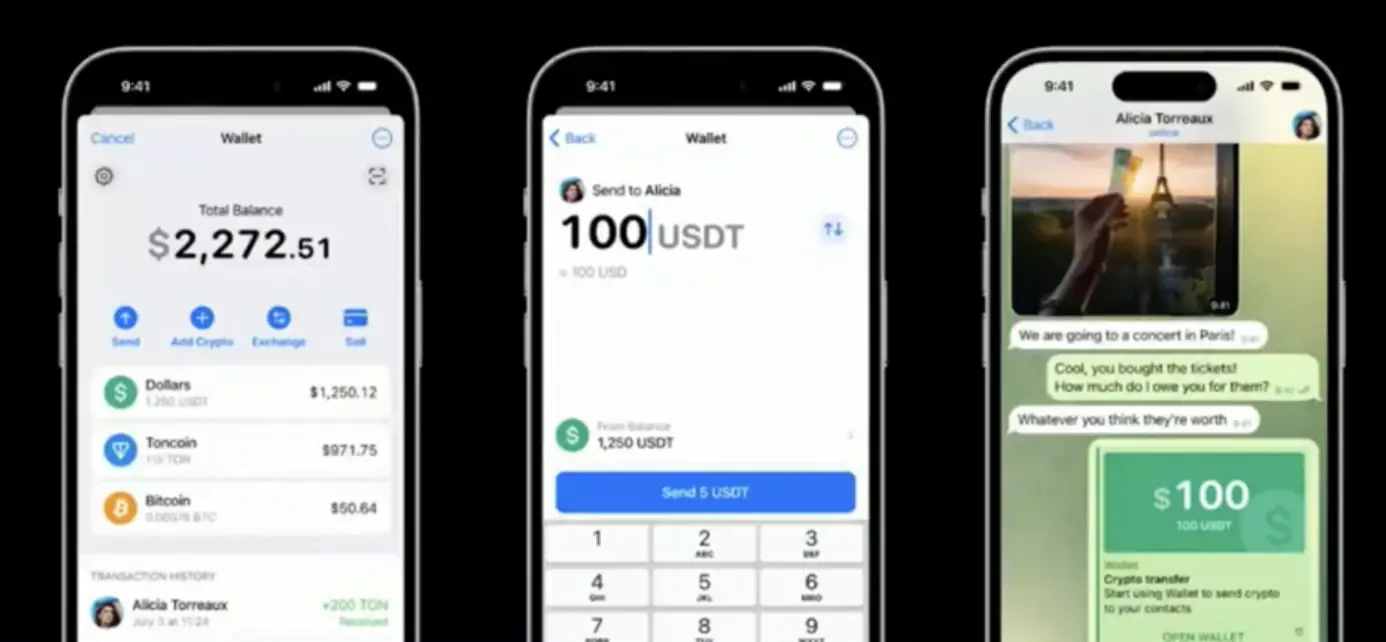 2024 年 4 月 19 日, Tether 宣布在 TON 区块链和 Telegram 钱包上部署其稳定币 USDT 。这一举动意味着加密行业在支付领域的重大进步,因为它将允许数亿用户通过 Telegram 平台无缝发送和接收稳定币,使支付变得像使用 Venmo 或 Apple Cash 一样简单。