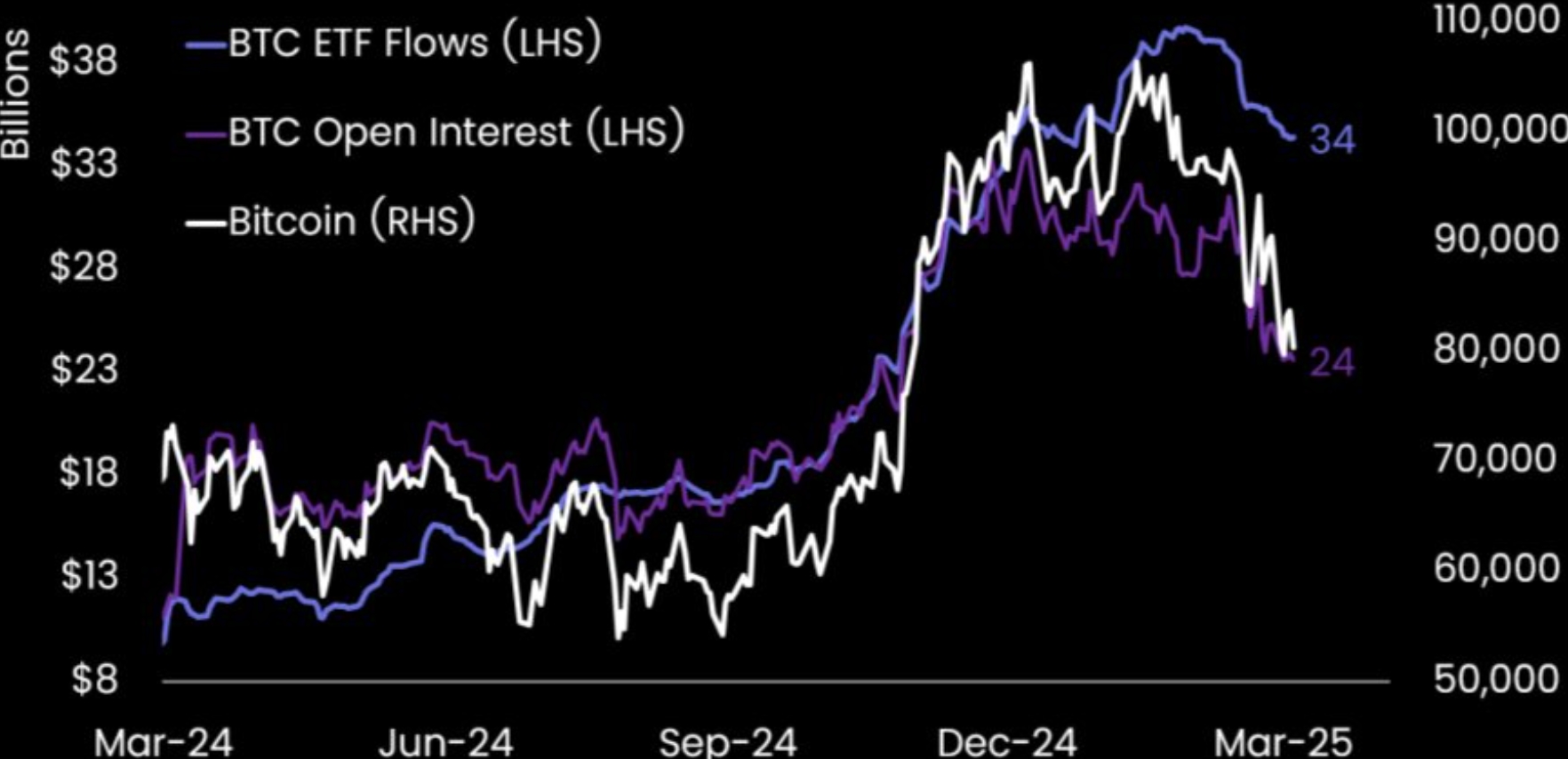 萌币网 消息,Matrixport 发文表示,截至 2024 年 12 月中旬,比特币 ETF 资金流入与比特币期货未平仓合约 (0penInterest) 均达到约 350 亿美元。此后,期货头寸大幅回落,而比特币 ETF 资金流保持相对稳定。 这表明短线交易者正在离场,可能将筹码卖给长期投资者。目前,资金费率和市场交易量均较低,除非出现新的宏观催化剂,否则比特币 ETF 资金的显著增长可能性较小。
