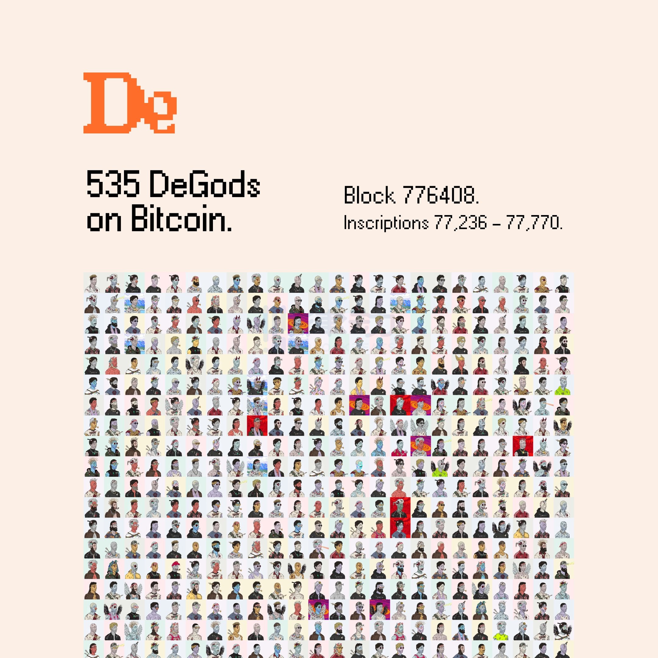 指 ETH 和 Solana 上的蓝筹项目来比特币网络上发行的 NFT 项目,比如 Yuga Labs 的「TwelveFold」还有 DeGods 的比特币版本。