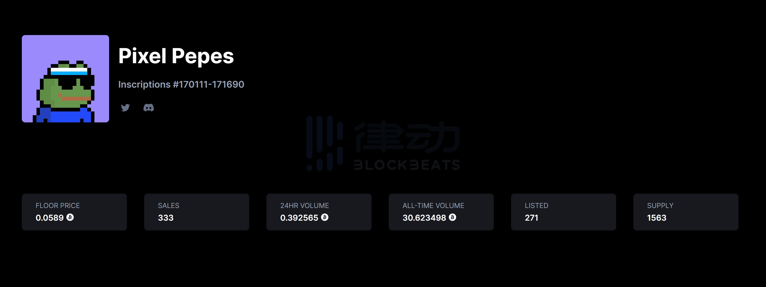 作为目前成交量最大的比特币 NFT 交易市场,Pixel Pepes 的价值很大程度上正来源于「铲子」预期。由于现在的比特币 NFT 相关工具在所提供的功能上比较重叠,通过给使用者空投 NFT 来吸引流量是非常有可能的。因此,从现在开始大家要注意多交互比特币 NFT 相关工具了。(推荐阅读:「比特币 NFT 生态实用工具一览」)