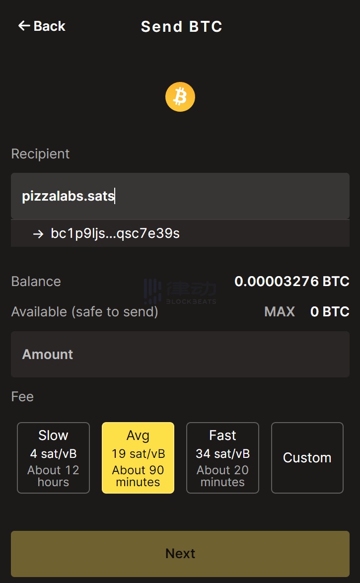 如果您是一名刚接触比特币 NFT 的玩家,Mint 一个属于自己的 .sats 域名作为开始是一个不错的选择。目前,.sats 域名已经有了初步的赋能。比如在 UniSat 钱包中,已经支持对 .sats 域名对应的比特币地址进行转账: