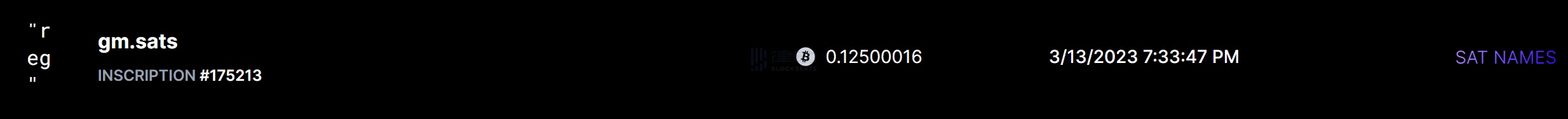 目前,已有近 60000 个有效的(独立的)域名被注册(Mint),域名所对应的 NFT 占比特币 NFT 总数量的近 15%。在 Ordinals Wallet 的市场上,.sats 域名已完成了 1800 笔交易,其中成交金额最高的域名为「gm.sats」,该域名以 0.125 BTC 的价格售出。