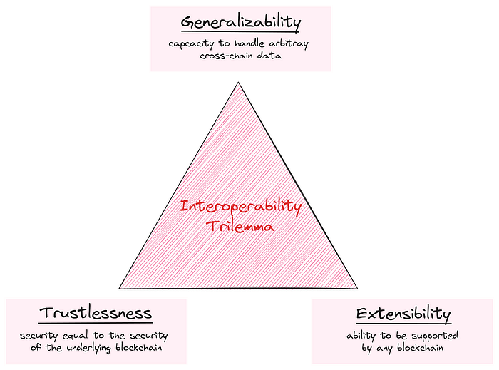 似乎多链发展已不可避免,多链通信是功能层链抽象的关键。早期跨链桥能够实现跨链代币转移,但用户使用繁琐,且只能满足资产转移需求。在链之间传递消息的能力对于构建跨链 Dapp 至关重要,以实现更复杂的用例,促进跨链治理、代币资产交互、合约调用、以及用户体验。现在有超过 100 个桥连接各种同构或异构链,根源在于互操作性三难困境: