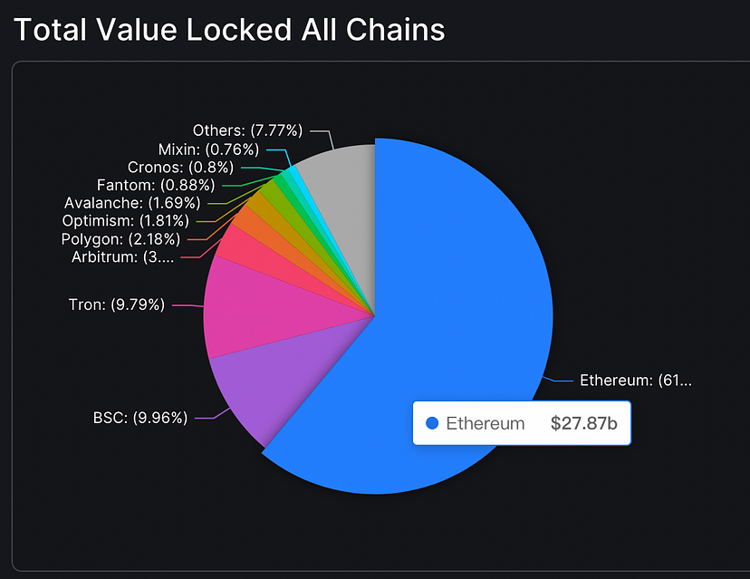 从技术上来看,Radiant通过Stargate的路由接口,利用借款产生后进行的跨链操作,实现了跨链互操作性。通过Defillama的数据可以看出,以太坊L1的TVL只占到了60%左右,其余分布在其他不同链上。Radiant的目标就是整合不同链上的流动性,构建出一个全链的借贷市场,解决不同链/L2之间流动性割裂的问题,提升用户的资产利用率。