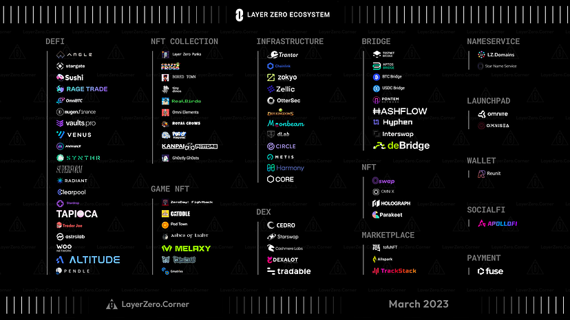 在LayerZero的NFT生态中,目前有多个基于LayerZero开发的NFT项目。例如,Omni X平台旨在链接创作者和用户,实现在其支持的多条链上铸造和交易NFT;Trantor是一个NFT跨链通信基础设施,支持NFT的跨链转账;Omnisea是一个全链NFT Launchpad,创作者可以在平台上发行可基于LayerZero跨链的NFT,并通过锁定代币获得部分平台收入作为奖励。这些项目表明了LayerZero NFT生态的多样性和可扩展性,为NFT的进一步发展提供了有力支持。