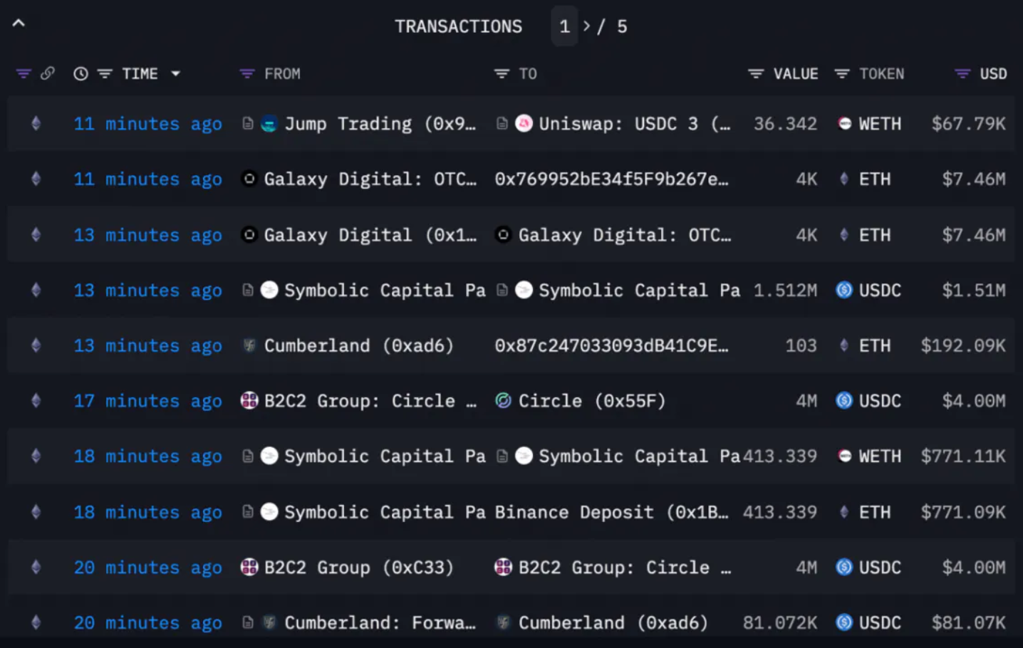例如,通过将结果筛选为仅限最近一个小时内的交易,最低价值为50,000美元,并仅限基金进行的交易,用户可以看到聪明钱最近进行的大额交易列表。