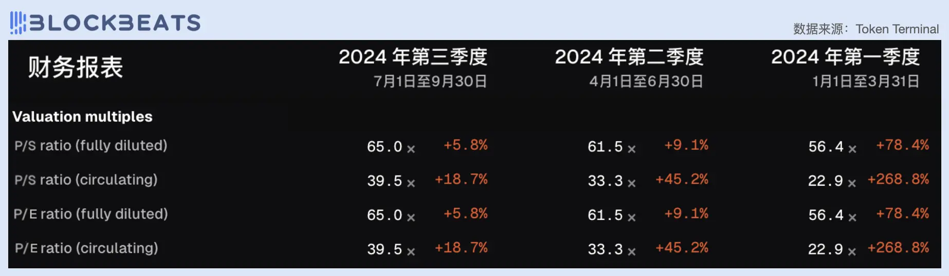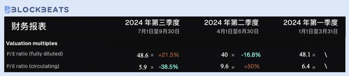 注:在本文中,我们以 P / E 市盈率作为判断协议估值水平的主要指标。其中协议费用收入( Fees )视为营收,以此计算其 P / S 市销率,而协议利润( Revenue )则是在扣除各方利益分配后协议或者 DAO 所得的实际利润,以此计算其 P / E 市盈率。另外,由于第三季度尚未结束,因此当季表现将据 7、8 月数据均值预估。