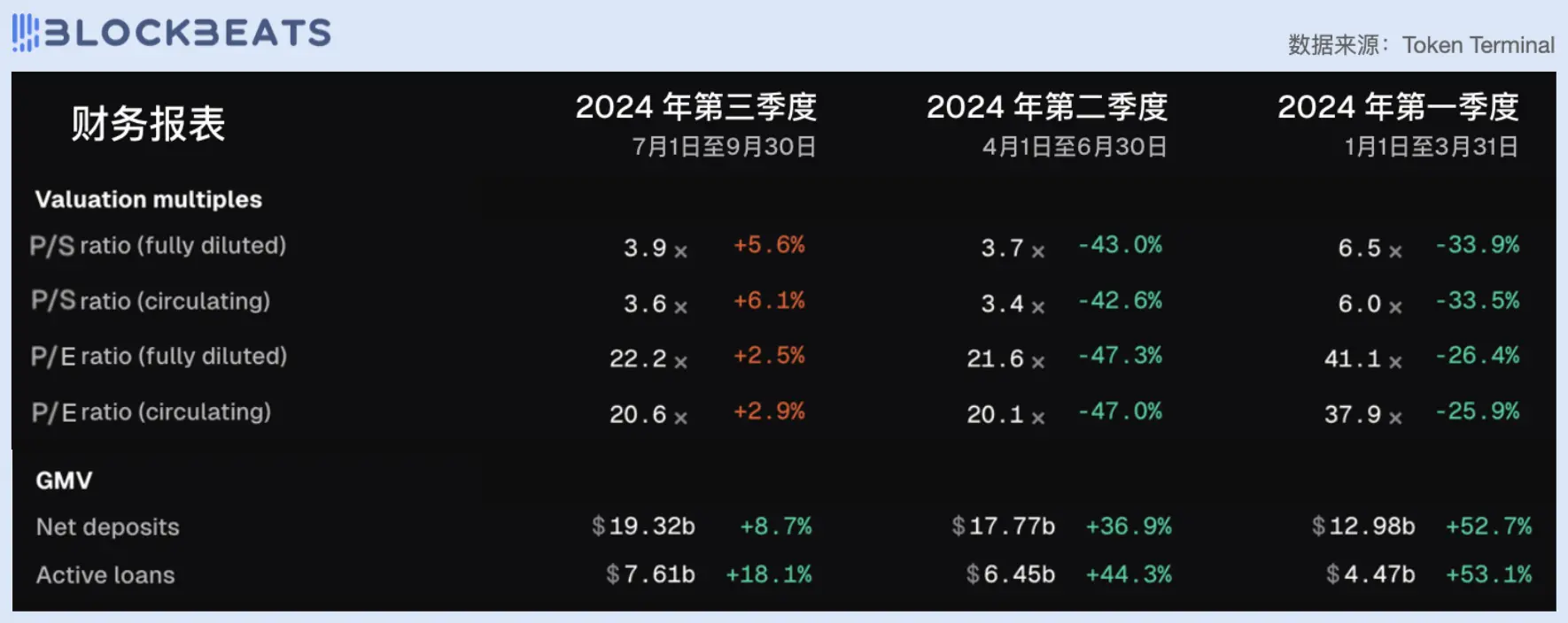 Aave 市盈率在今年一季度创下高光后,从二季度开始「腰斩」,并在随后几个月稳定在 22 左右。这一方面是因为 AAVE 代币在 4 月初的价格下跌,另一方面也是因为 Aave 协议本身的基本面数据的不断强化。协议 GMV 在过去两个半季度中一直保持稳定增长,而在刚刚过半的第三季度中,这一数据已经超过了整个二季度的表现。