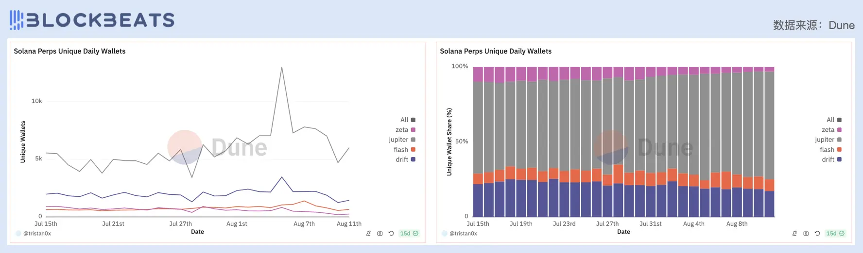 左:Solana 日增用户来源;右:Solana 永续合约产品日增用户来源