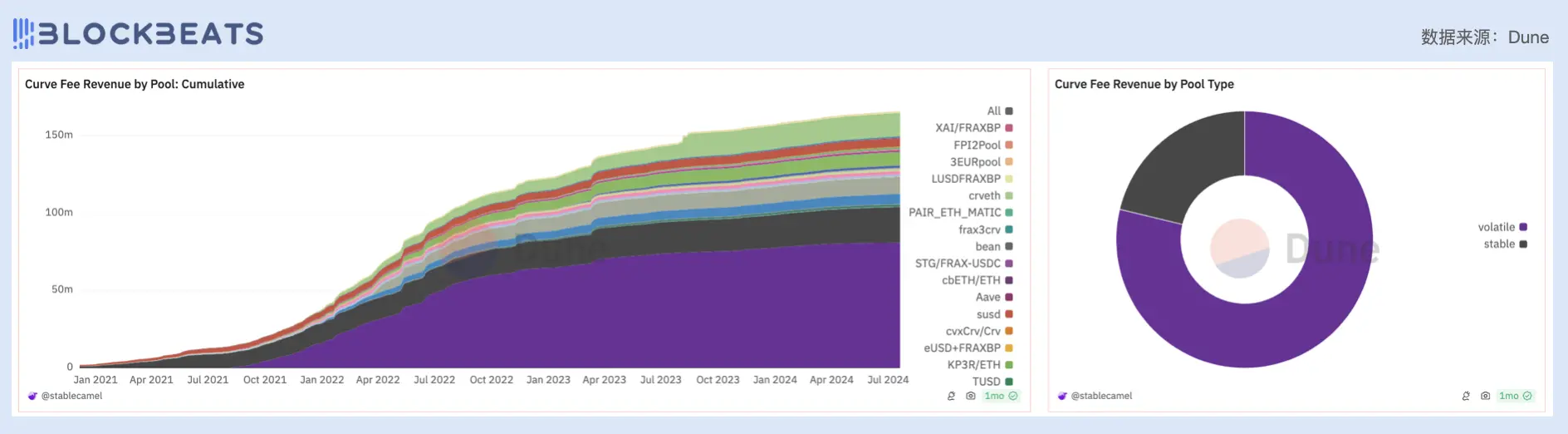 左:Curve 协议盈利来源(按流动性池划分);右:Curve 协议盈利来源(按流动性池属性划分)