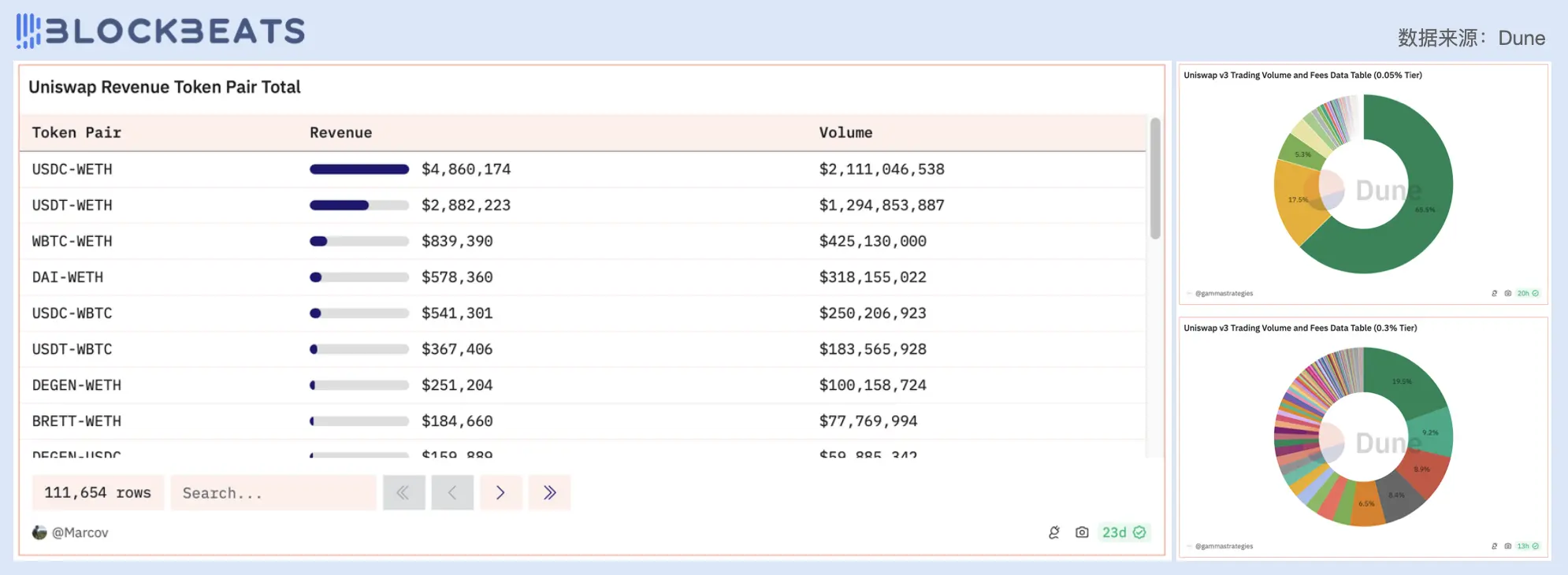 Uniswap 头部交易对及费用梯级占比