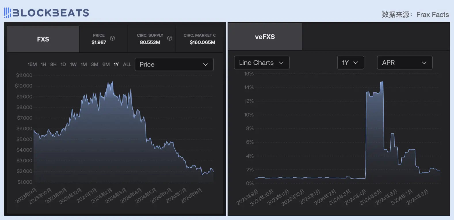 左:FXS 价格走势;右:veFXS APR 变化