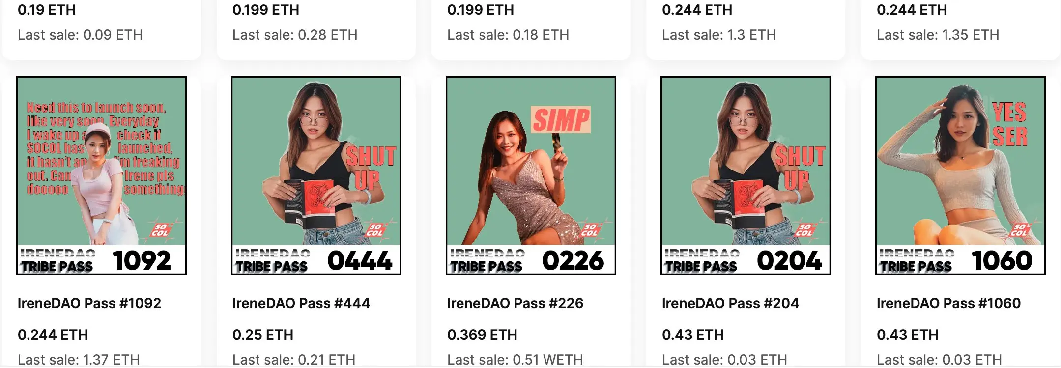 Irene Zhao :IreneDAO 是一个完全的 free mint,我个人没有任何 IreneDAO 的 NFT,你们可以去我钱包上看,很多都是免费送给一些朋友了。当时我们是有一些版税,大概 5%。之后,我们捐赠了十万美元给一个东南亚的 NTK trafficking (反贩卖组织)。这一切都有证据,我可以提供相关证明。