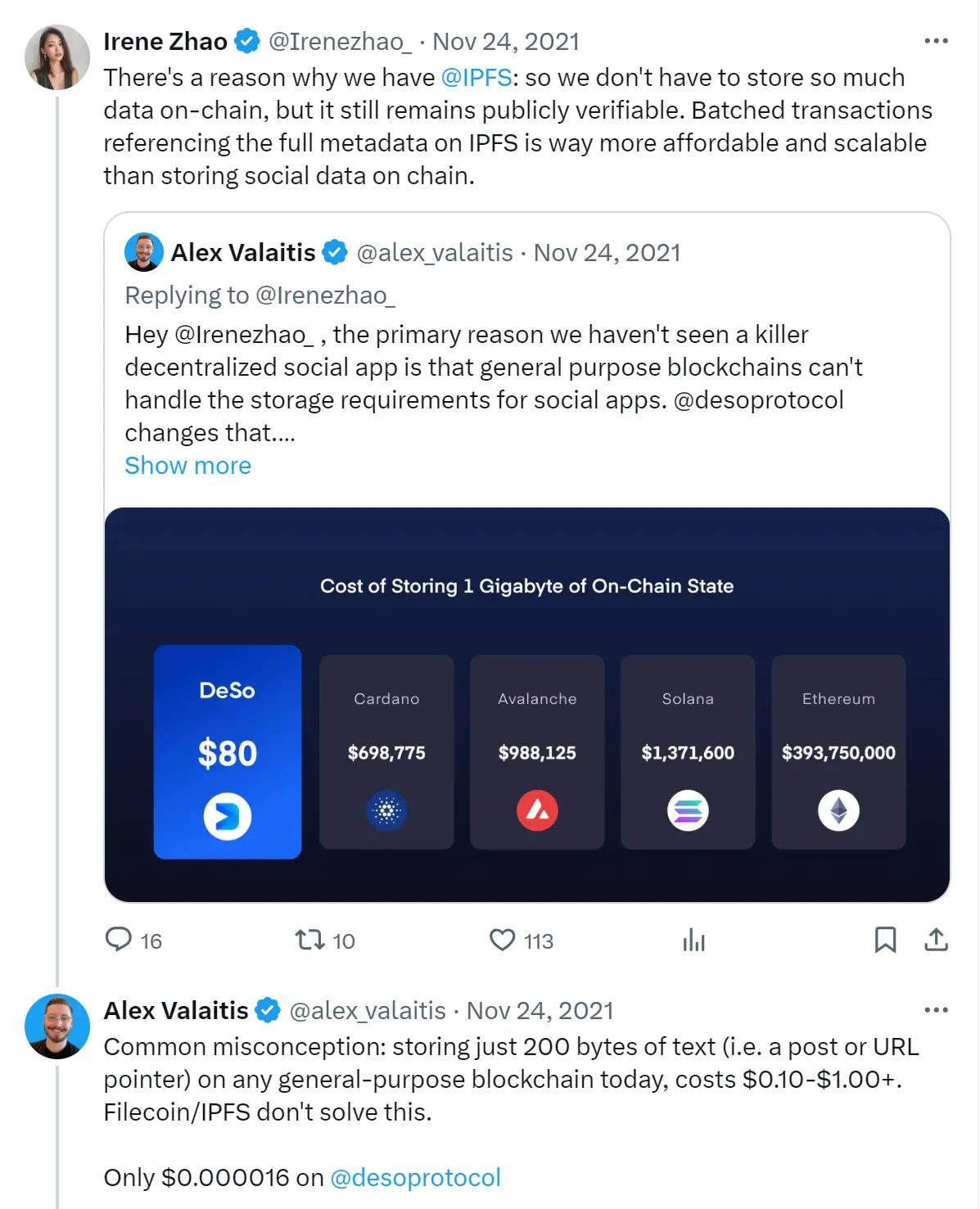 Irene Zhao :这个讨论的重点是如果我真的想靠发 NFT 赚钱的话,我完全可以在 IreneDAO 之后再发一个新的 NFT 项目,每个 0.1 以太坊,我发 1 万个就能轻轻松松赚 1,000 枚以太坊。但我没有必要去靠这个版税赚钱,当时我想的是做 KOL ,通过这一形式把那些 Web 2 中很厉害的创作者都引进来,做一个 Web 2 .5 平台。但是事实证明 Web 2.5 叙事是行不通的,我们确实也没有做起来。