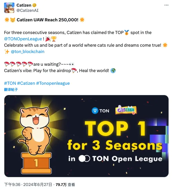 「我前段时间和各种传统游戏公司聊,他们都对 TON 链上现在的各种小游戏市场很感兴趣,其中就包括盛大游戏。」 Sunny 对我透露。