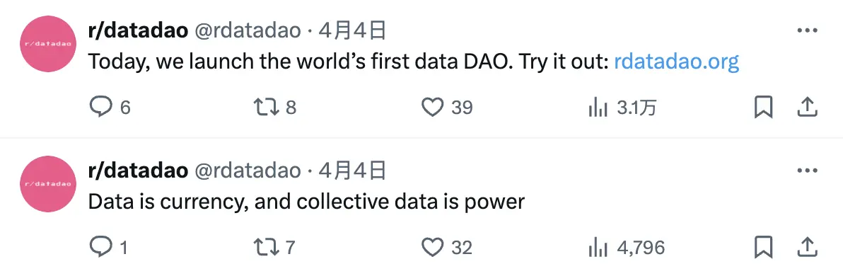 r/datadao 作为第一个数据 DAO,本意是为了对抗传统 Web2 平台对用户数据的不合理的所有权和处置权。