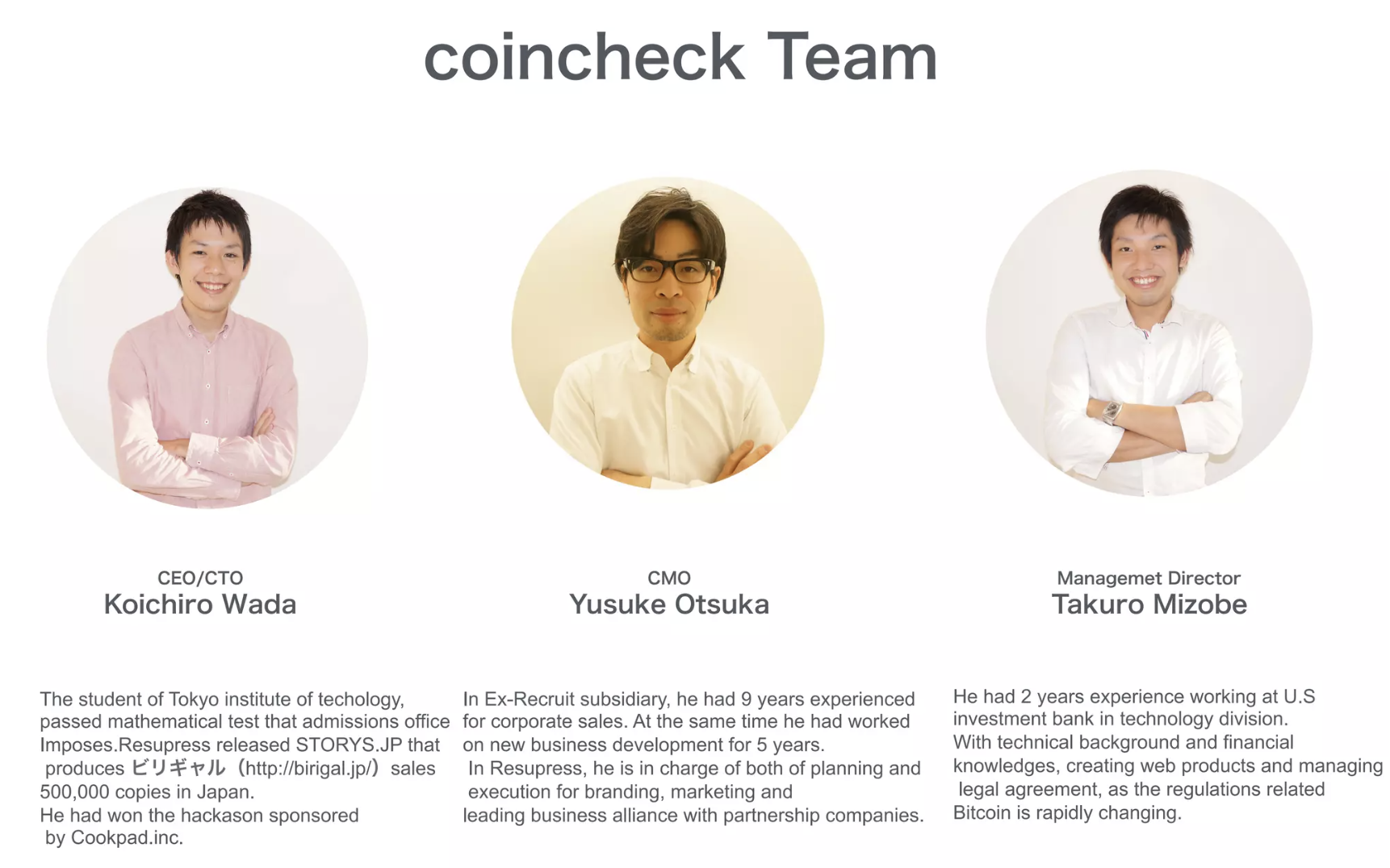 检索 Takuro Mizobe 的履历,发现他大学毕业于日本顶尖理科学校东京工业大学,毕业后进入摩根大通担任工程师。2014 年回国与合伙人共同创立了株式会社レジュプレス,作为首席工程师, Takuro Mizobe 凭借技术背景和金融知识,创建了网络产品并管理法律协议,推出了 Coincheck 的交易业务。