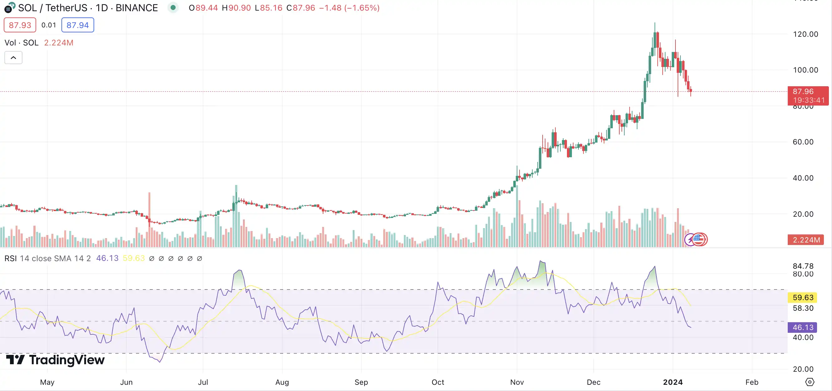 随着 Solana 市值超越 BNB,SOL 在这个周期的表现可谓一鸣惊人。在上周的大瀑布中,SOL 也很快反弹至暴跌前的价格。截至撰稿时,SOL 的价格为 87 美元,24 小时跌幅为 6.2%。