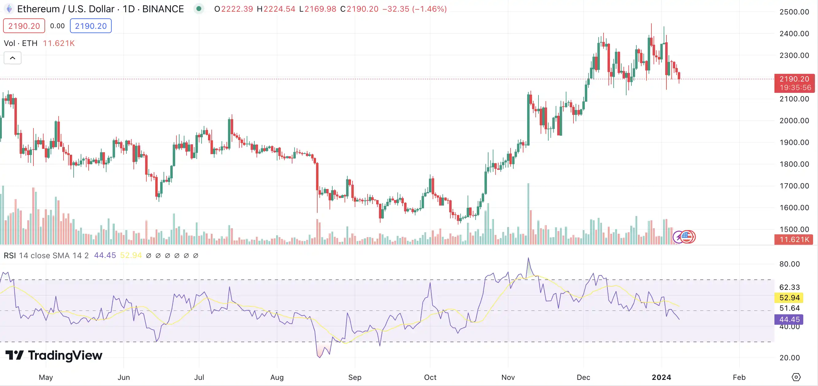 截至撰稿时,ETH 价格为 2190 美元,24 小时跌幅 2.4%。