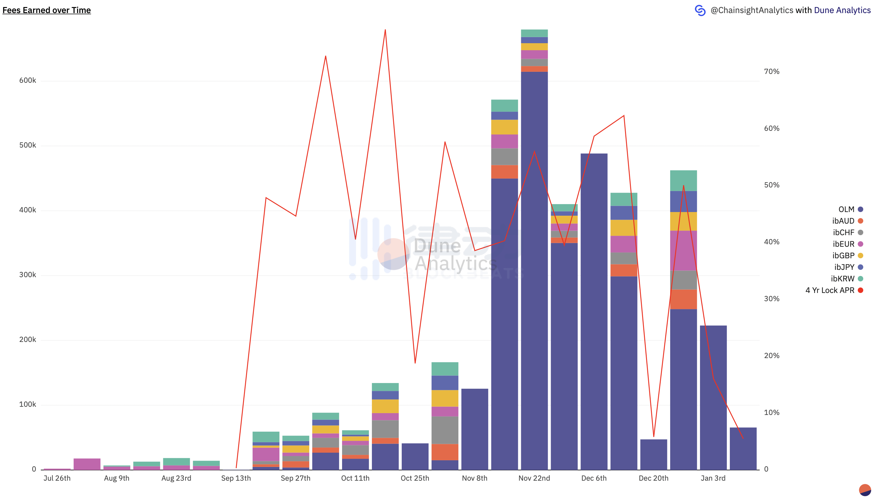 3. 锁仓 Token 的数量会随着每周排放量成正比地增加