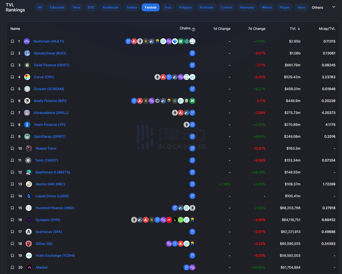 1. 持有 FTM 及 FTM 上前 20 名协议的 Token