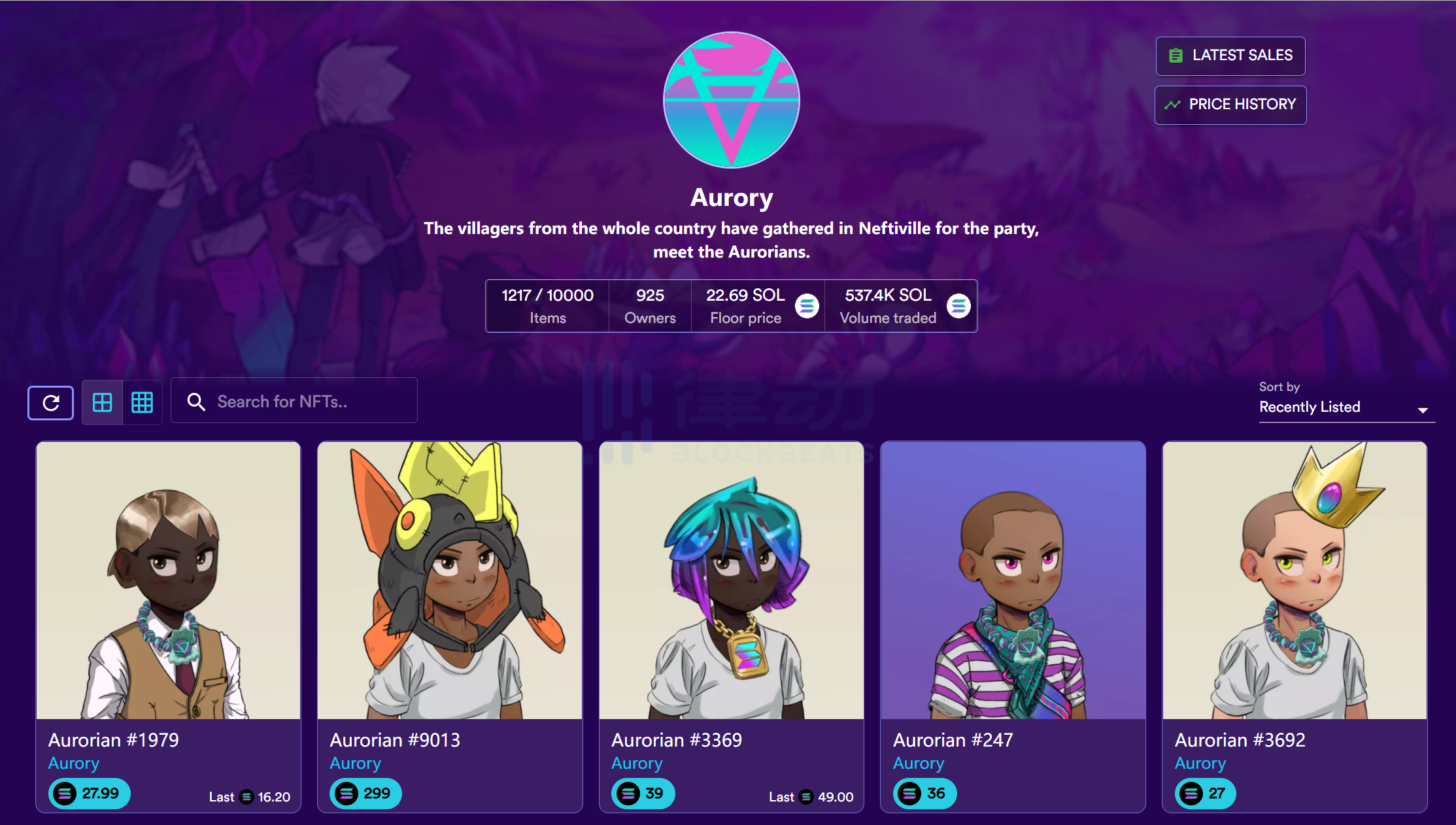 (Aurory 仍在 NFT 平台拥有可观的成交量和不斐的价格)