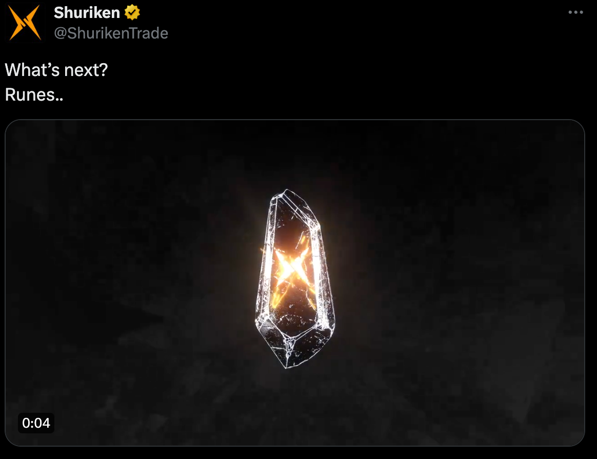 @ShurikenTrade 现在是支持SOL, ETH, BASE, AVAX, BLAST等链,是比较成熟的链上机器人,目前已发推文,等Runes协议上线后会增加相关功能。