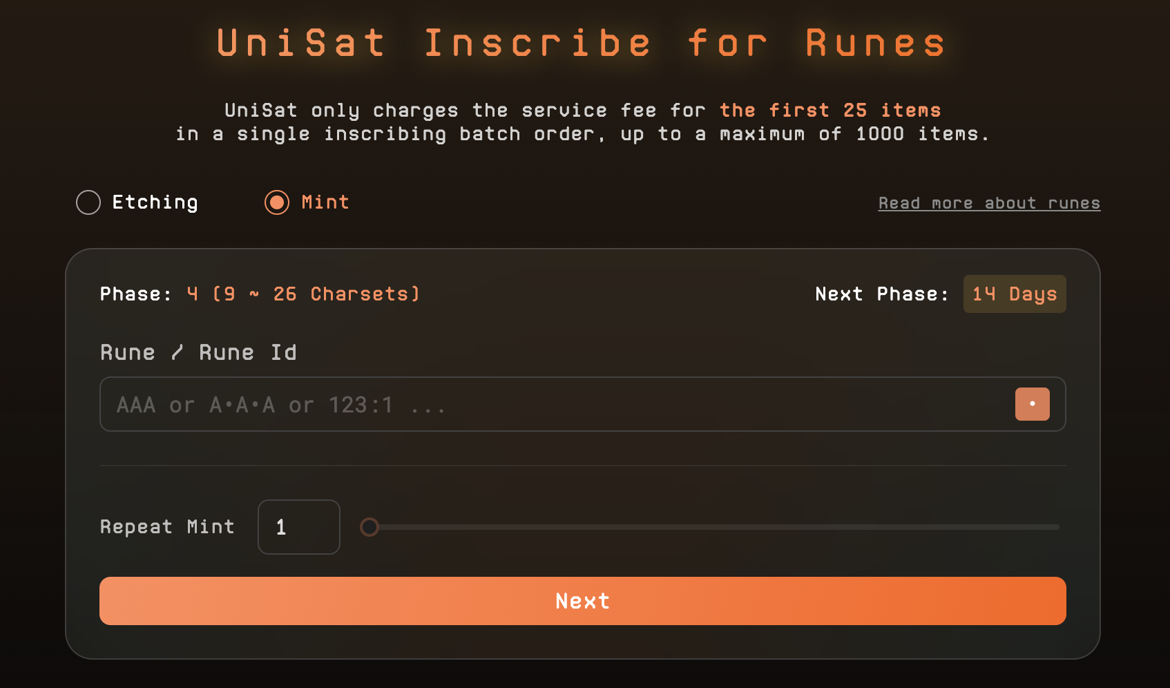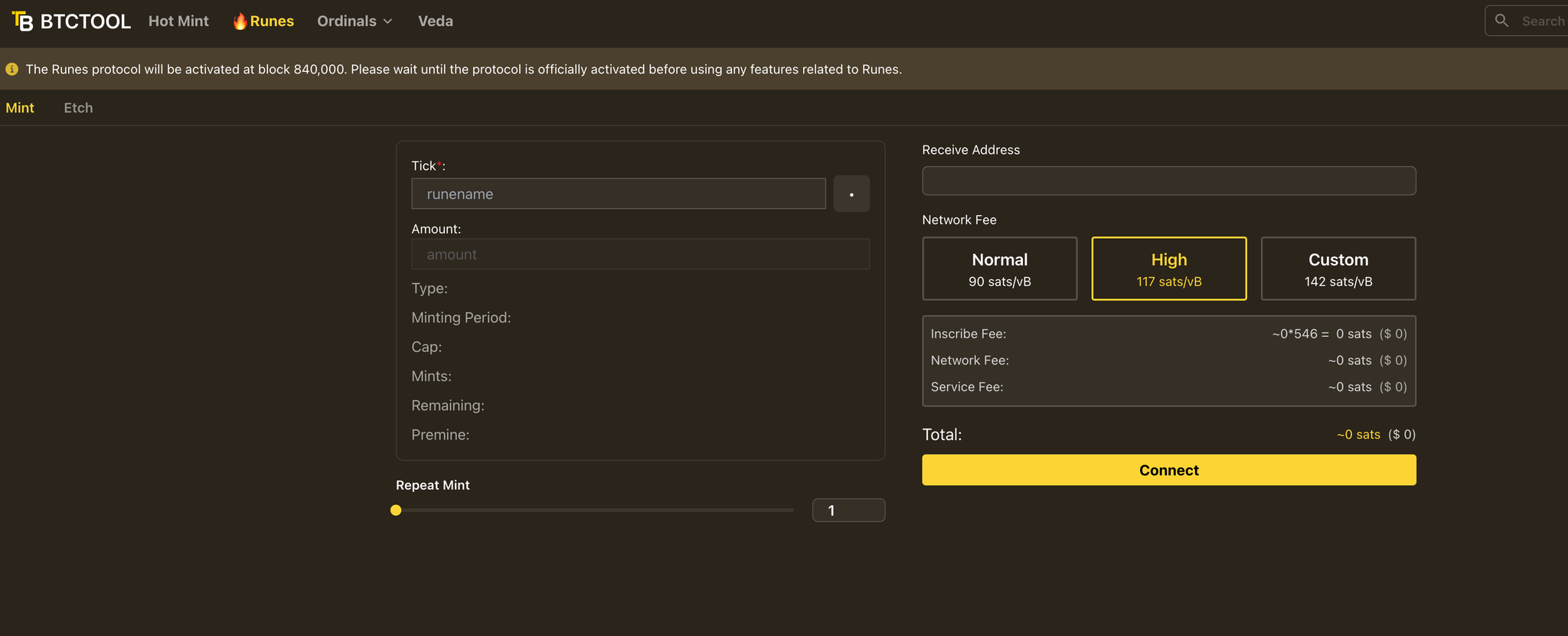 相信大家都很熟悉这个钱包和平台了,使用bc1p开头的比特币钱包地址,同时 Unisat 也将支持符文工具与交易市场,目前可以通过测试网进行操作,其实大致的铸造流程和之前BRC-20类似。