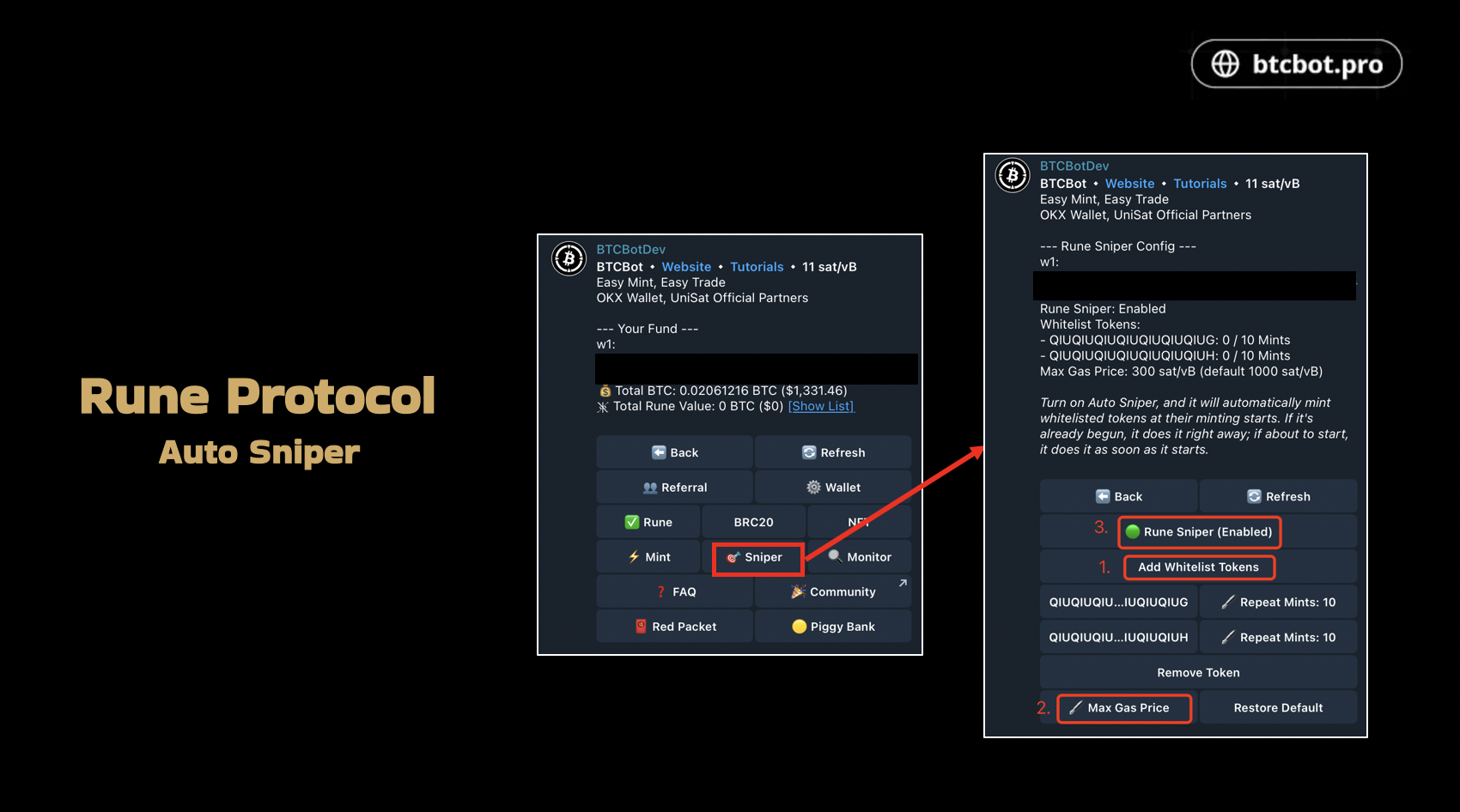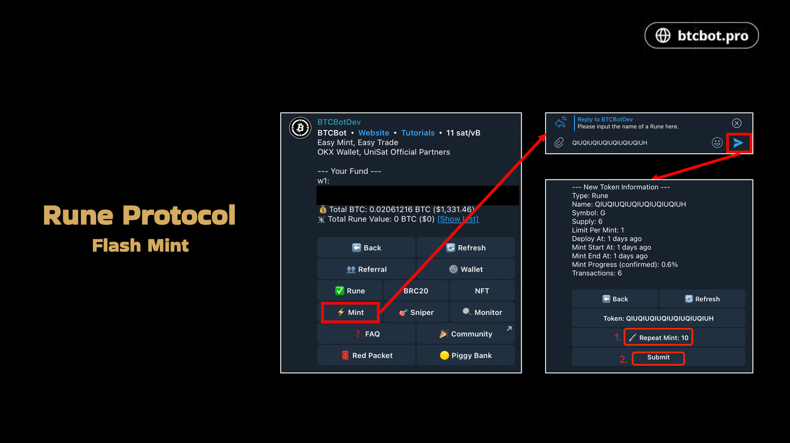 @btcbotpro 是一个专注于BTC Runes/BRC20/NFT 的电报机器人,建议直接在机器人里创建钱包,可以选择中文,存入至少0.002 BTC到新创建的用于交易的钱包。后面有些功能现在还没有开放,等上线后这些功能就可以使用,下面是详细教程: