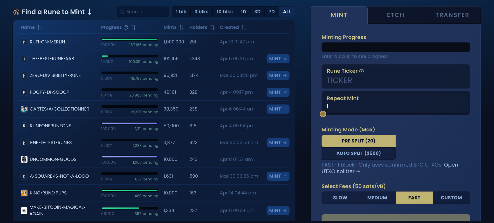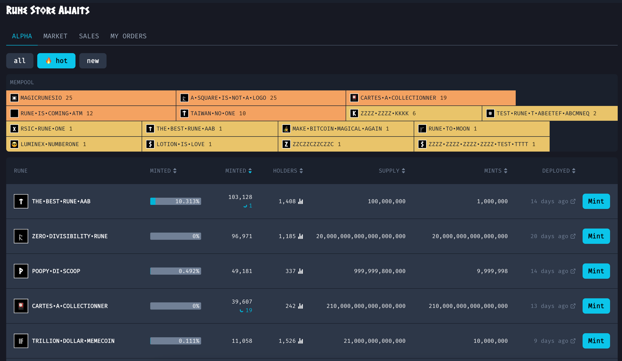 @runestore_io 目前已上线测试网,可以实现连续铸造、批量挂单以及扫单功能,还可以在 mempool 中实时观察铸造的动态。