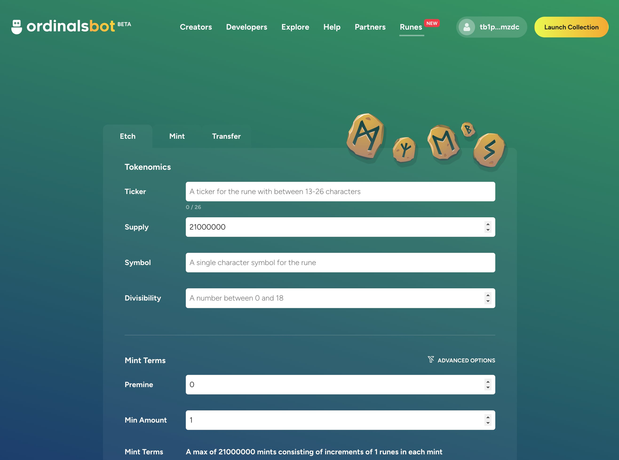 @ordinalsbot 作为一个老牌铭文铸造工具,测试网已上线了 Runes 的板块,可以进行部署、铸造和转移。