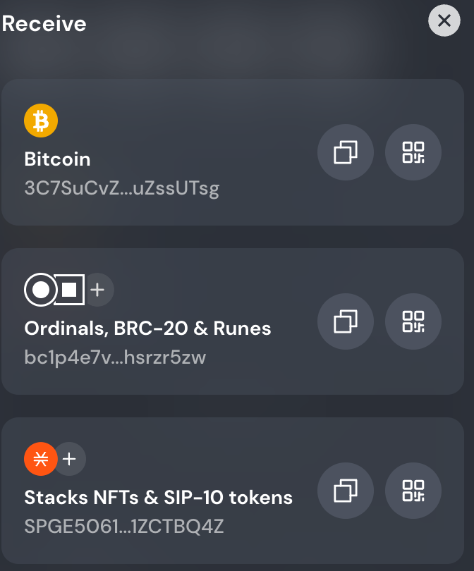 相信大家参与过比特币生态的用户都对bc1p 的地址不陌生,Xverse 与其他两款钱包不同的是:使用 3 开头的比特币地址作为资产接受和转出,bc1p 地址只作为 Ordinals 资产的接受和转移地址,真正的做到了资产的隔离,不会出现 UTXO 烧掉资产的情况。提醒:大家进行钱包充值、填写Ruens接受地址的时候一定不要写错!