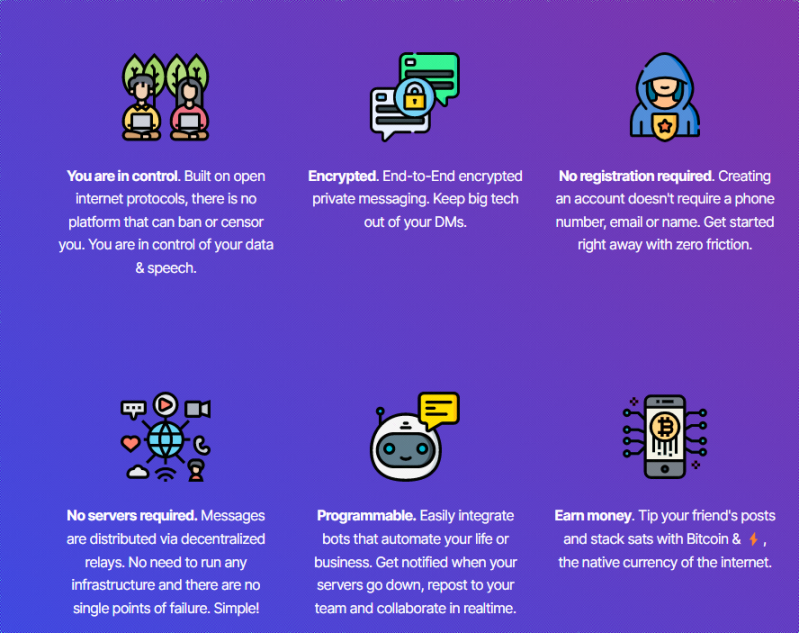 这是一个开放协议,旨在创建一个抗审查的全球社交网络,这不是一个单一的网站,而是一个由成千上万的用户组成的网路,这些用户可以相互发布到彼此的中继服务器,服务器可以无缝地相互交互。