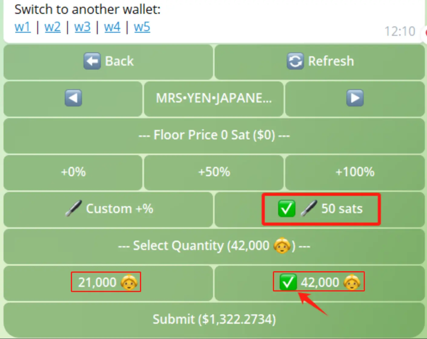 自定义 token 价格(点击“钢笔”修改价格或者涨幅),选择某一个或者多个单子。
