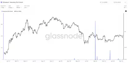 图3. 自愿退出验证者节点的数量统计(来源:glassnode)
