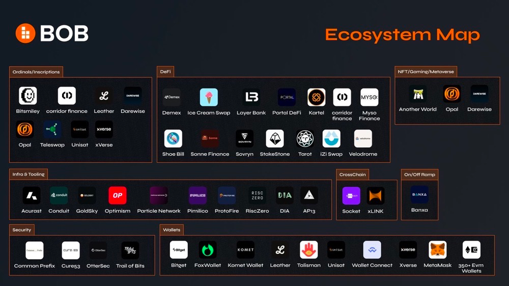 BVM 团队目前已经发行了多个 BTC L2,alpha chain 是第一个 BTC L2 网络,naka 用于 BTC DeFi 业务的 L2,EternalAI 完全链上 AI 的 BTC L2,swamps 是一个支持 SRC-20 DeFi 的 BTC L2,RuneChain 是一个专注于 Rune 交易的 BTC L2,Bittendo 是一个支持 gamefi 的 BTC L2,bloom 是一个支持 BTC 质押与再质押的 BTC L2,正在策划中的链还包括引入 POW 与 RWA 的数条新 L2。