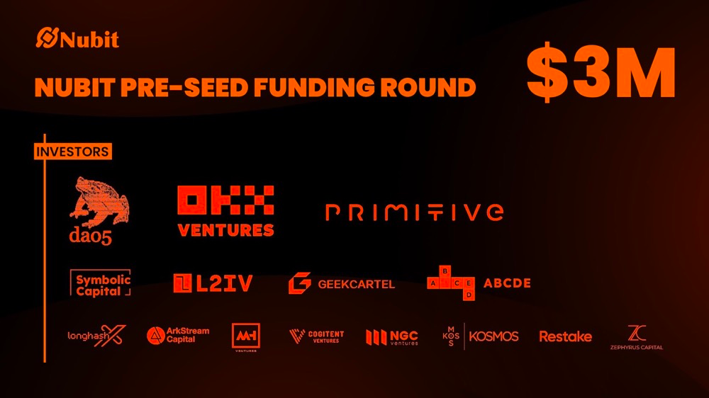 Nubit 已进行了第一轮 Pre-Alpha Testnet,用户可通过链接 BTC 账户获取积分或运行轻节点赚取积分。第一轮测试网已结束,计划进行第二期测试网。Nubit 的天使轮融资参与者包括 Bounce Finance 和 Brc20 创始人 Domo,完成了 300 万美元 Pre-Seed 轮融资,dao5、OKX Ventures、Primitive Ventures 等参投。