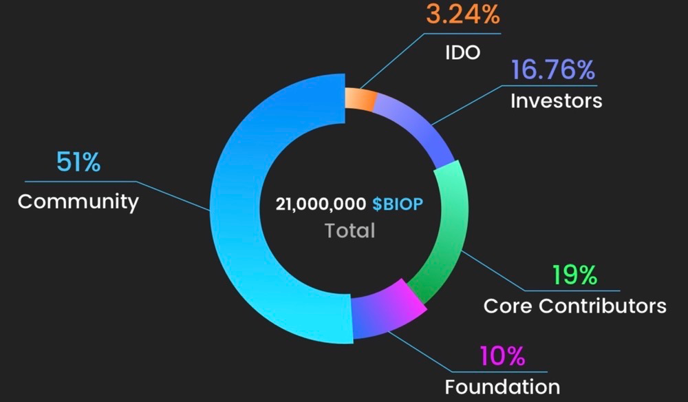 BiopDAO 是一个基于 Op Rollup 的项目,专注于支持 BRC-20 等协议,并提供 Biop Virtual Machine(BVM)来支持智能合约。该项目的目标是创建一个高效、安全和可扩展的 Layer 2 解决方案。BiopDAO 的主要代币是 $Biop,其总供应量为 21,000,000 个。目前,$Biop 的市值约为 50 万美元,而 FDV 为 2.5M 美元。BiopDAO 计划推出三个版本的 L2 区块链:V1、V2 和 V3。V1 版本计划于 2024 年第一季度推出,V2 版本计划于 2024 年第二季度推出,V3 版本计划于 2024 年第四季度推出。尽管 BiopDAO 的代码开源,但目前项目进展缓慢,完成度不高。