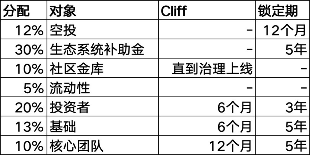 Tokenomics 分配规则如下: