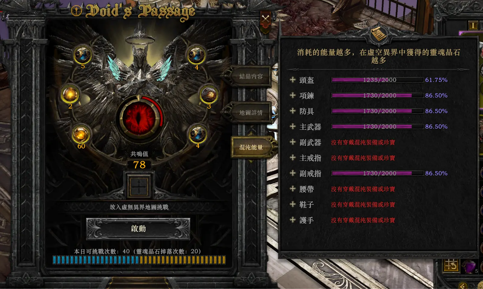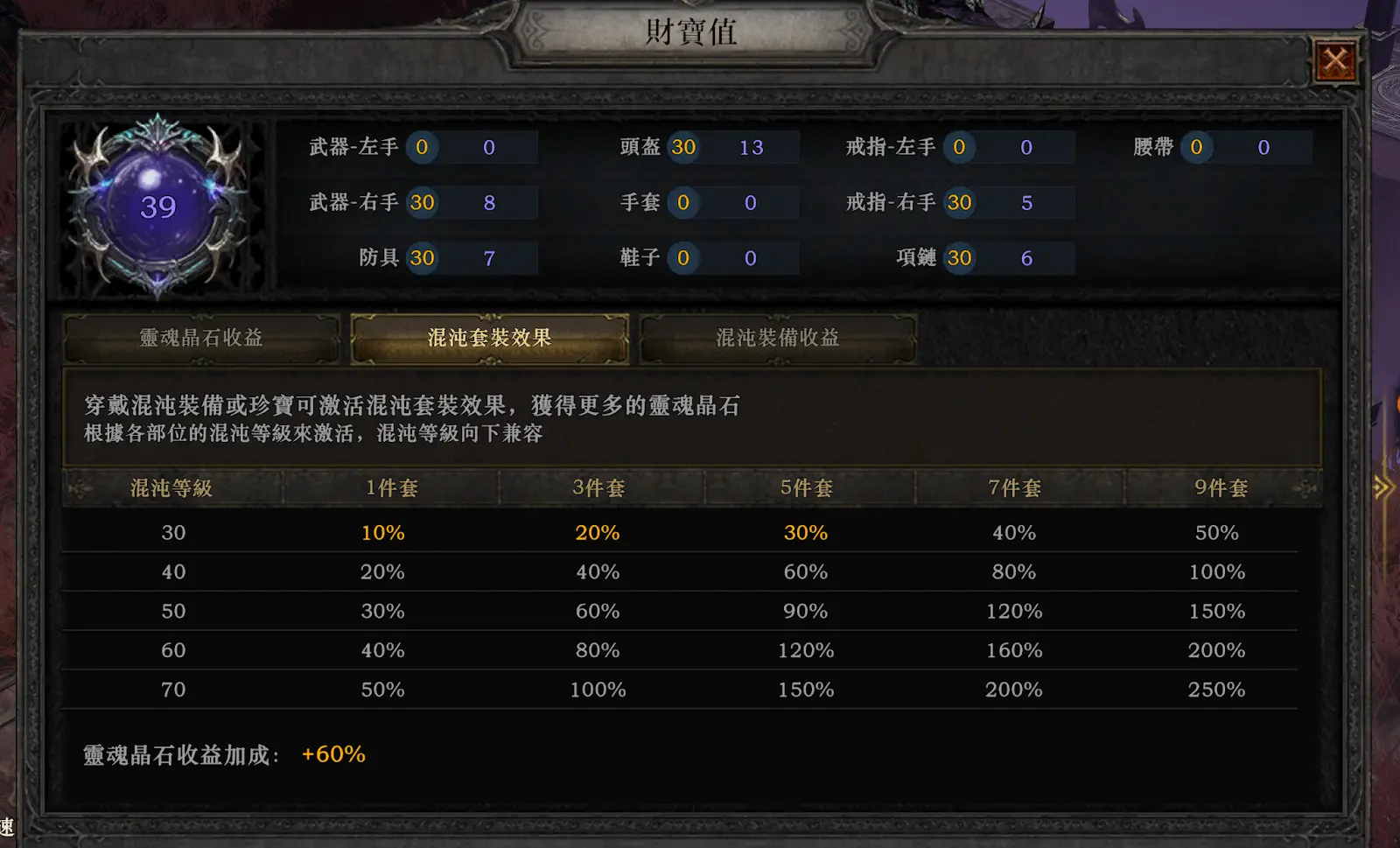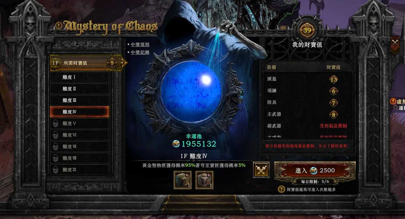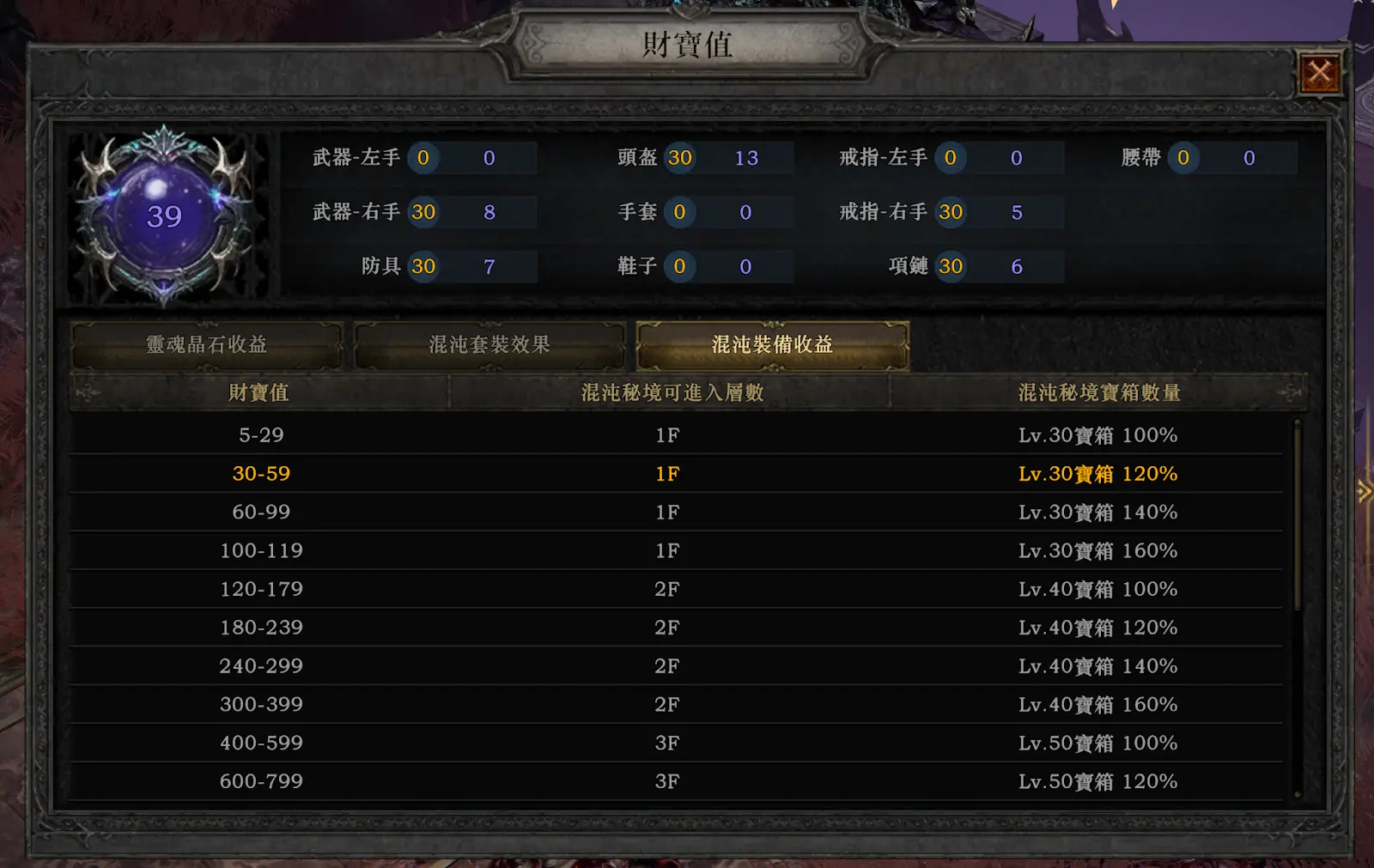 确保高财宝值装备 选择财宝值高的混沌装备,能帮你进入混沌秘境的更高层以及获得更好的宝箱奖励。