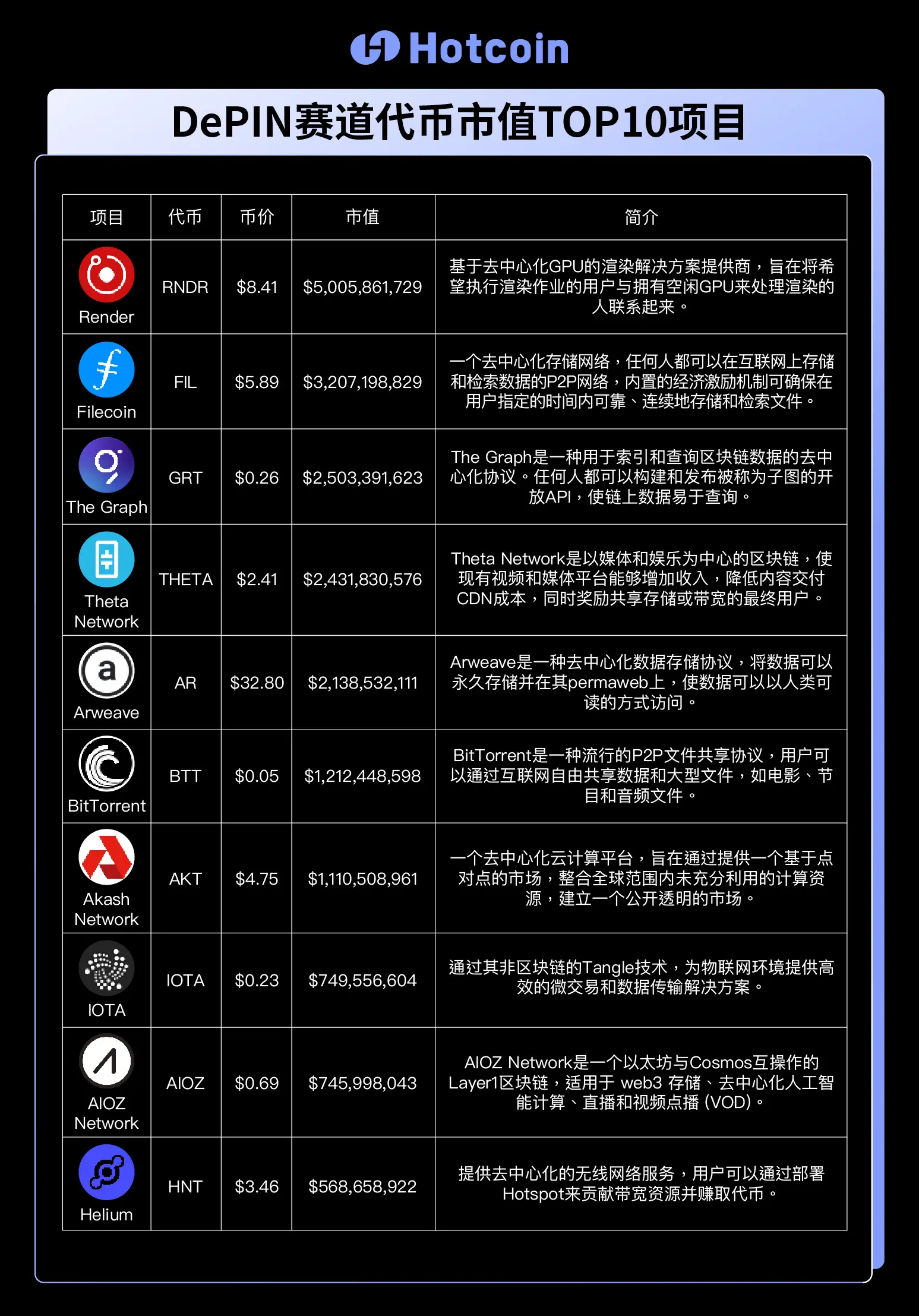 1.技术创新与应用拓展:DePIN 项目涉及的技术创新,特别是在物联网(IoT)、 5 G 通信、云计算、AI 算力等领域,优化了数据存储、计算能力和带宽资源的分配,提高了这些资源的利用效率和安全性,为传统行业带来颠覆性的改变,创造了新的市场需求。