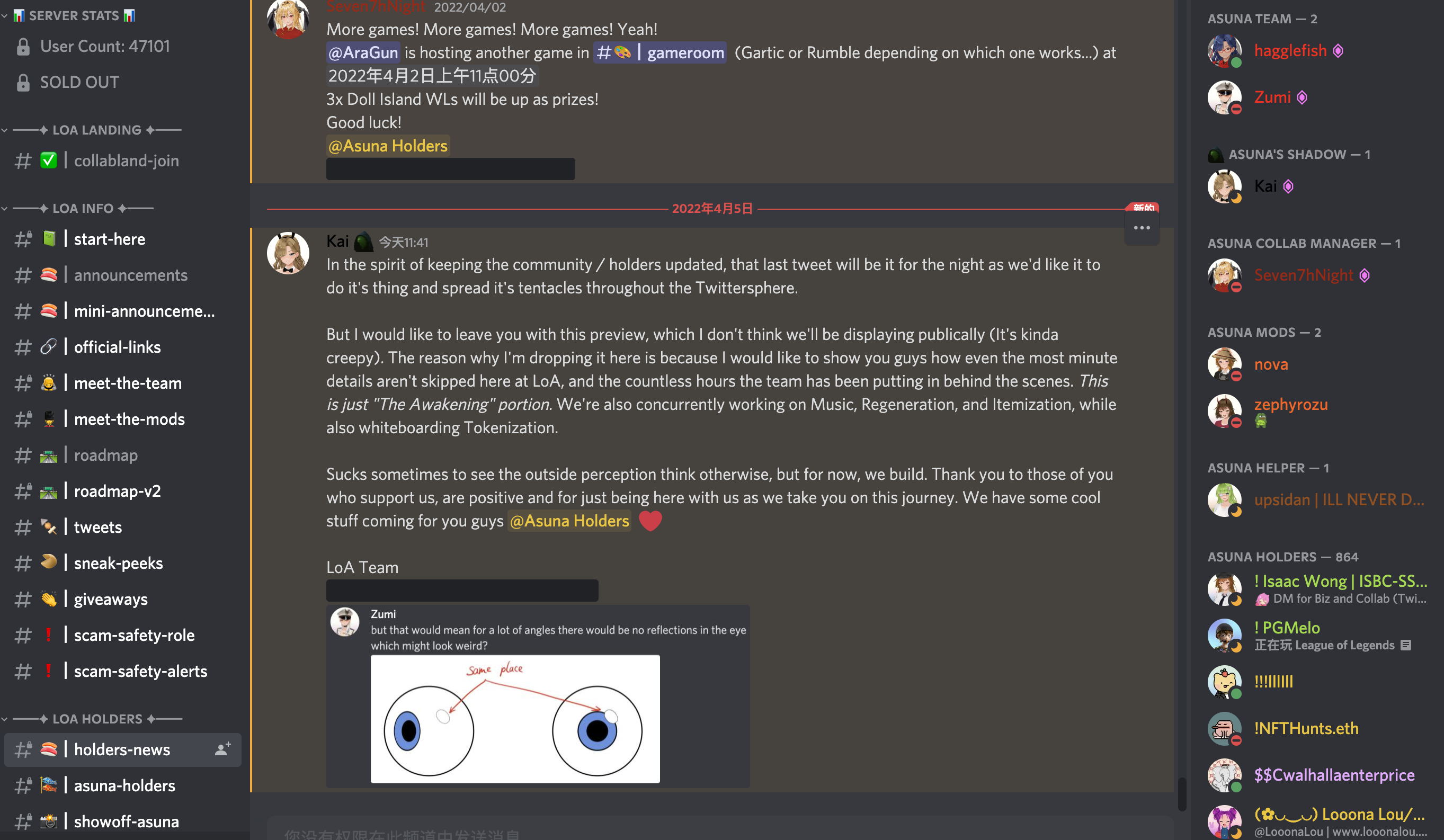 Discord 运营是个繁重的工作,但通过跟头部项目社区学习,也可以快速学会,包括但不限于频道的搭建、第三方工具的使用、AMA 等各种活动的举办、Mod 的招募和管理、大量白名单的发放等等。如果是做全球性的 NFT 项目,英语是一个比较关键的事项,比如做 AMA,需要的英语水平是非常高的,不然难以应付。另外需要管理来自全球的 Mod,不同时区的 Mod 来实现 24 小时值守。